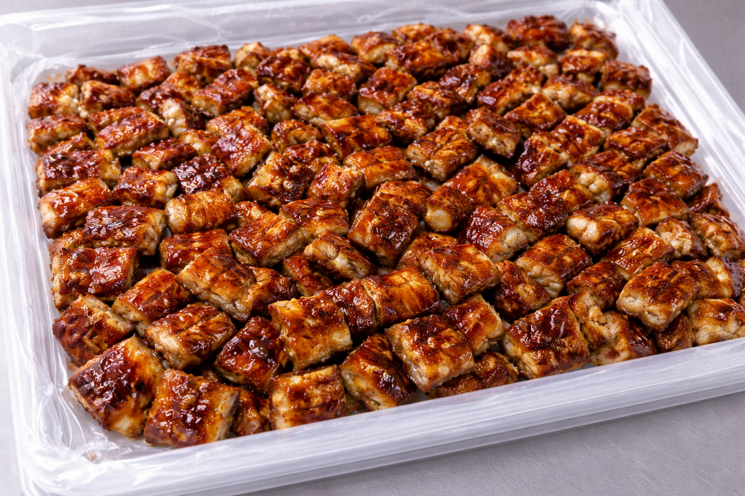 ロストラータ種を使用したウナギ蒲焼を刻み加工した業務用商品です。